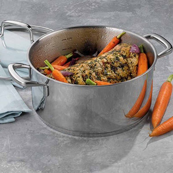• Дръжките на тенджерата и дръжката на капака са изработени от лята неръждаема стомана.