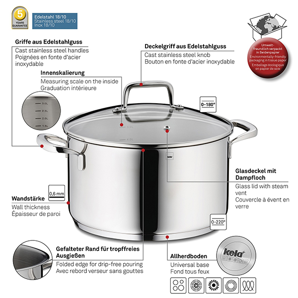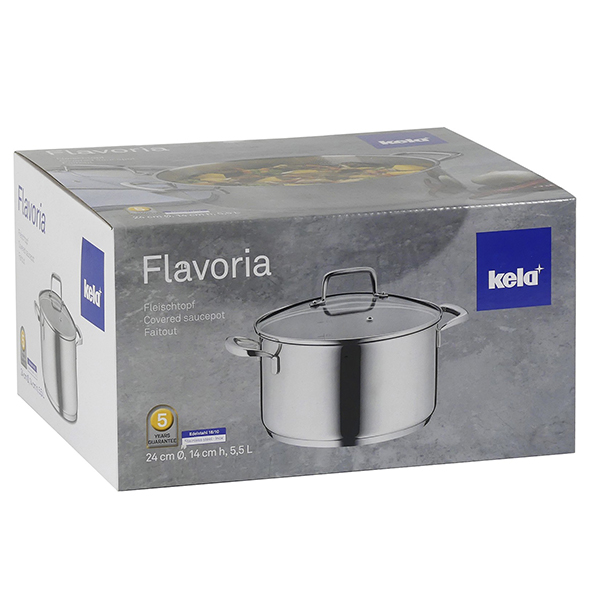 Серията Flavoria от KELA е наистина открояваща се. Още от пръв поглед се вижда висококачествената изработка. Тази серия за готвене е полирана отвън и фино матирана отвътре.