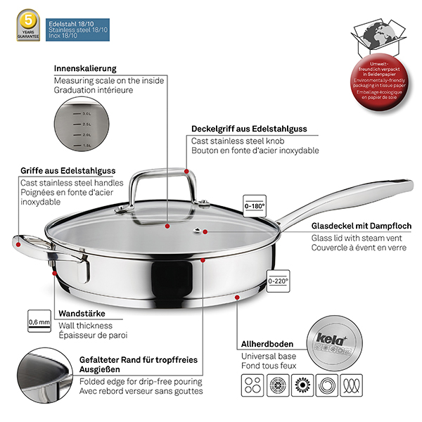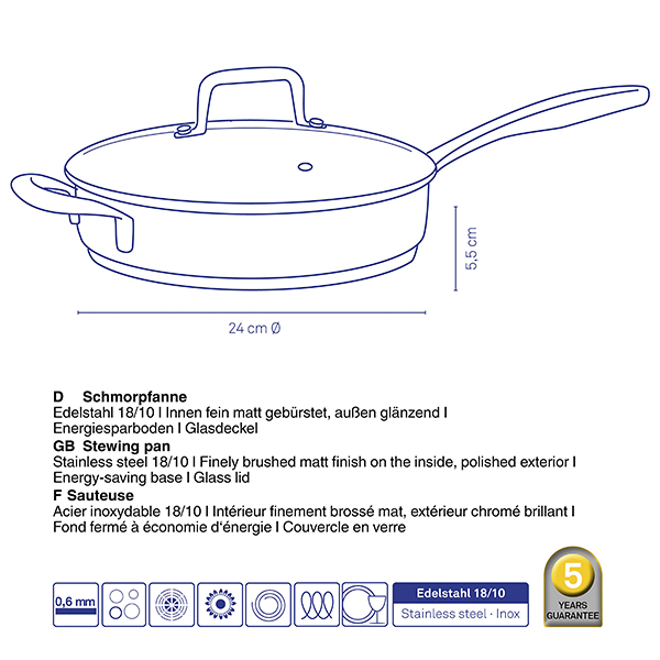 • Енергоспестяващото многослойно дъно е обработено с Impact-Bonding-Technologie. Това позволява перфектно сцепление, максимална устойчивост на големи температурни амплитуди и оптимално разпределение на топлината.