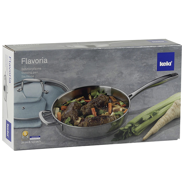 Серията Flavoria от KELA е наистина открояваща се. Още от пръв поглед се вижда висококачествената изработка. Тази серия за готвене е полирана отвън и фино матирана отвътре.