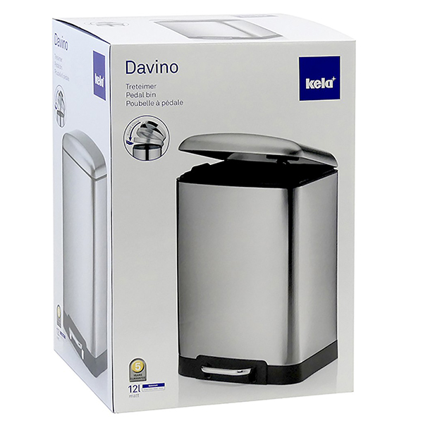 Кошовете с педал от серия Davino са с вместимост 6, 12 или 30 литра и са изработени от стомана, прахово боядисана за цветните модели. Те впечатляват с изчистения си дизайн и функционалност. Кошовете с педал са оборудвани с технологията Silent Close, т.е. капакът не пада просто при затваряне, а се затваря приятно тихо. Ако бутнете капака леко назад, когато е отворен, той остава в това положение и можете да извадите вътрешната кофа, за да я изпразните. След това можете да натиснете капака обратно надолу и той отново се затваря тихо.
