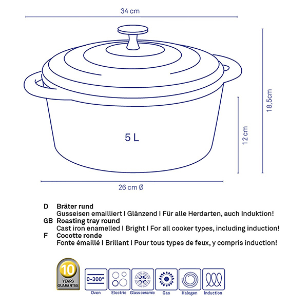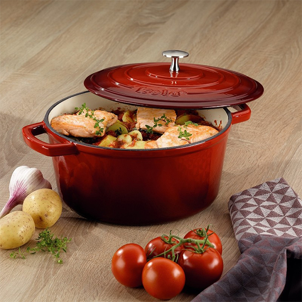 Чугунената тенджера Calido е перфектна за ястия, които трябва да се готвят по-дълго време. Доброто задържане на топлината означава, че е необходима по-малко енергия. Освен това изглежда добре на масата и гарантира, че ястието, което сервирате, ще остане топло за по-дълго.