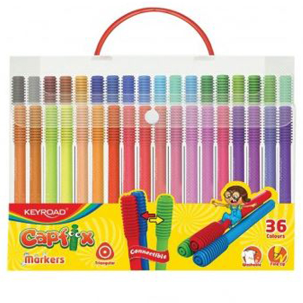 Флумастери 36 цв., свързващи се, триъгълни, PP куфарче