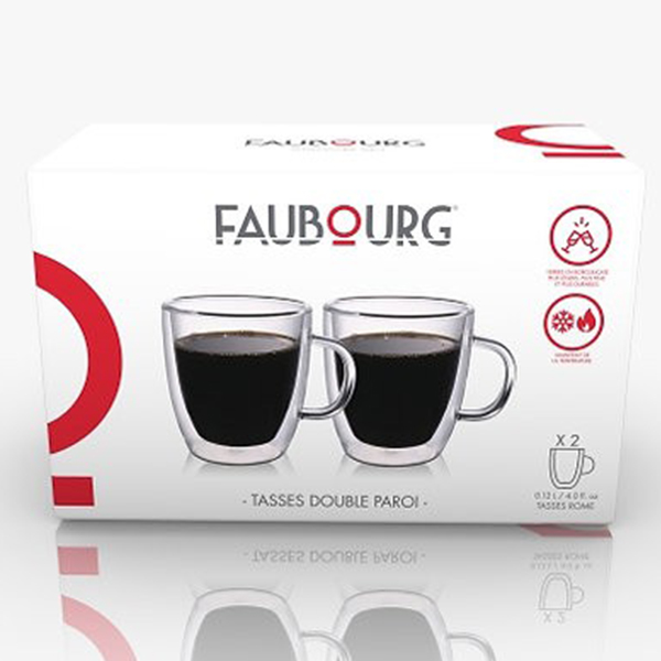 вустенните чаши на FAUBOURG ROME са изработени от топлоустойчиво боросиликатно стъкло, което е леко и деликатно, но все пак достатъчно здраво за нуждите на всекидневния живот. Благодарение на изолационния ефект на въздуха между стъклените слоеве топлите и студените напитки запазват температурата си по-дълго.