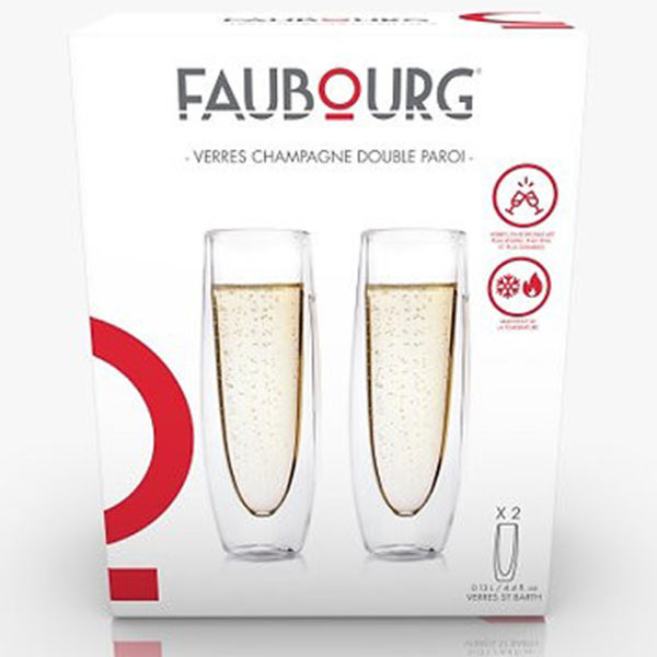 Двустенната чаша за вино и шампанско FAUBOURG ST BARTH е изработена от боросиликатно стъкло – един от най-хигиеничните и лесни за почистване материали, който не отделя никакви вещества или миризми в храните и напитките. Освен това е леко и деликатно, но все пак достатъчно здраво за нуждите на всекидневния живот.
