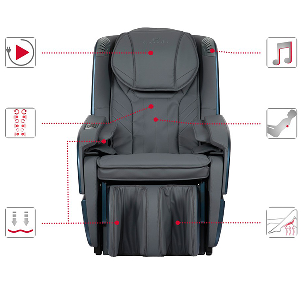 За да осигури пълен релакс за вашите ръце и крака, масажният стол EcoSonic разполага с дванадесет въздушни възглавници с регулируем интензитет на въздуха.