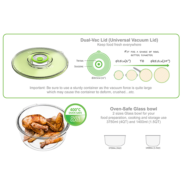 Серията Lyon на FOSA се състои от вакуумни контейнери за съхранение на храна, които запазват храната по-свежа за по-дълго време и намаляват отпадъците на потребителите. Освен това са изработени от боросиликатно стъкло, подходящо и за готвене във фурна. Запазете хранителните вещества, вкуса и дълготрайността на вашата храна с лесната за използване вакуумна система. Като се премахне по-голямата част от кислорода, намалява скоростта на окисление. Контейнерите се вакуумират само с вакуумна помпа FOSA.