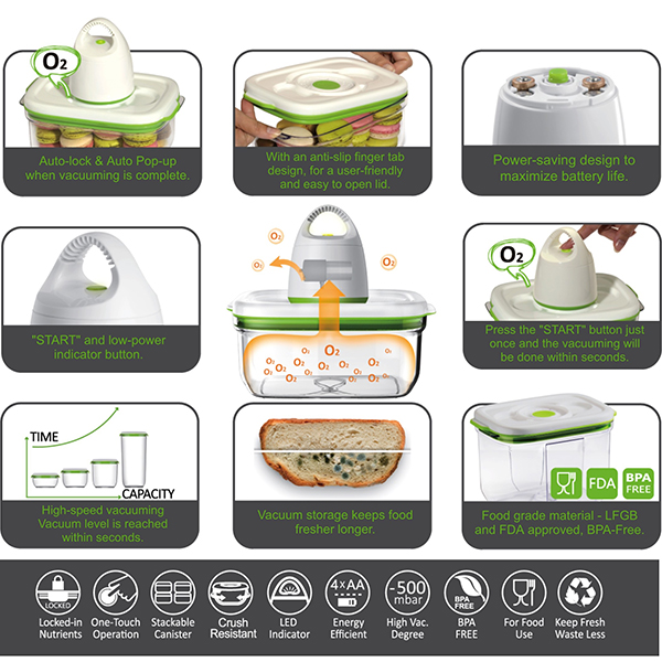 - Запазва свежестта на храната до 5 пъти по-дълго