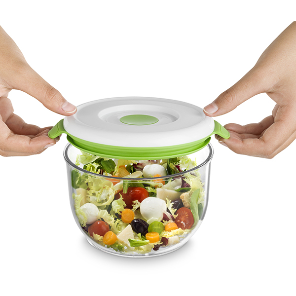 Запазете хранителните вещества, вкуса и дълготрайността на вашата храна с лесната за използване вакуумна система. Като се премахне по-голямата част от кислорода, намалява скоростта на окисление. Контейнерите се вакуумират само с вакуумна помпа FOSA.
