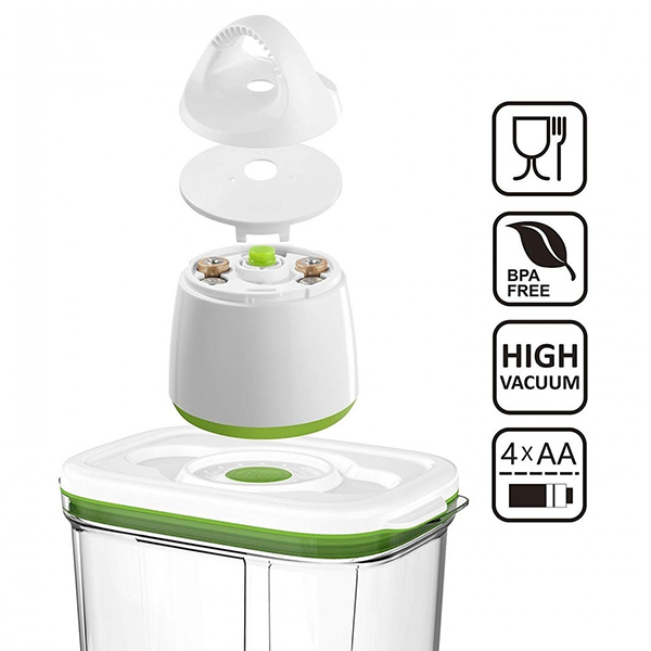 Запазете хранителните вещества, вкуса и дълготрайността на вашата храна с лесната за използване вакуумна система. Като се премахне по-голямата част от кислорода, намалява скоростта на окисление. Контейнерите се вакуумират само с вакуумна помпа FOSA.