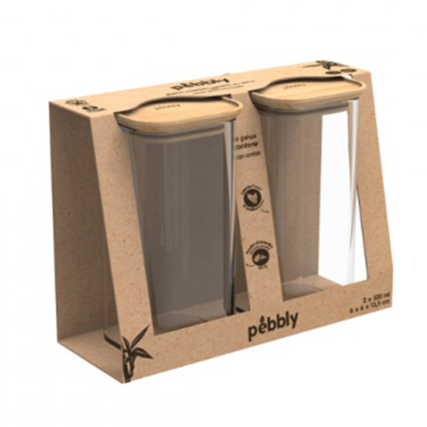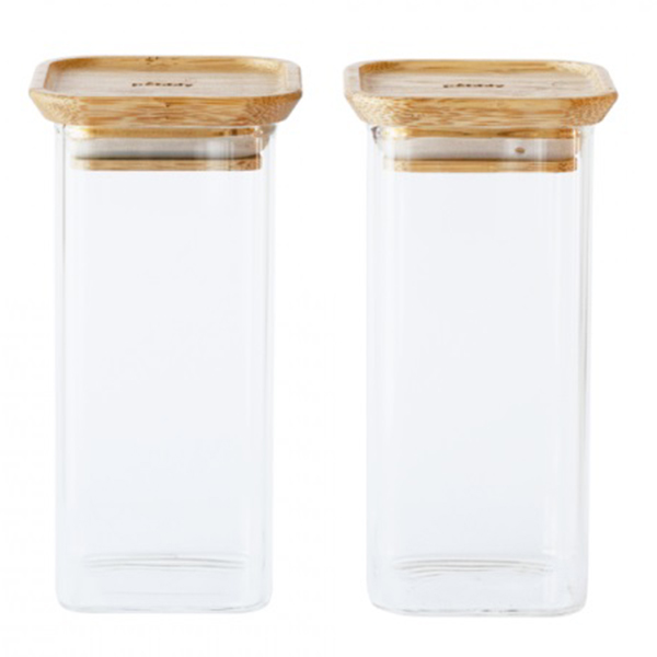 PEBBLY Сет от 2 бр. квадратни стъклени канистери с бамбукови капаци размер S - 320 мл