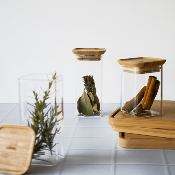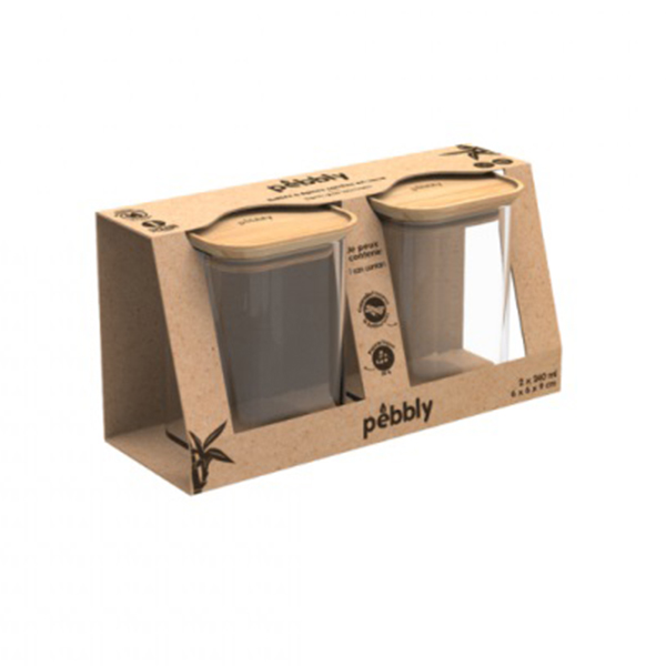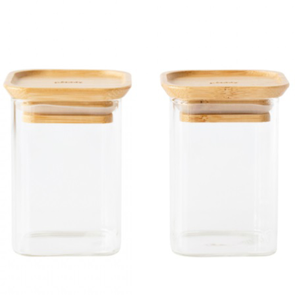 PEBBLY Сет от 2 бр. квадратни стъклени канистери с бамбукови капаци размер XS - 240 мл.
