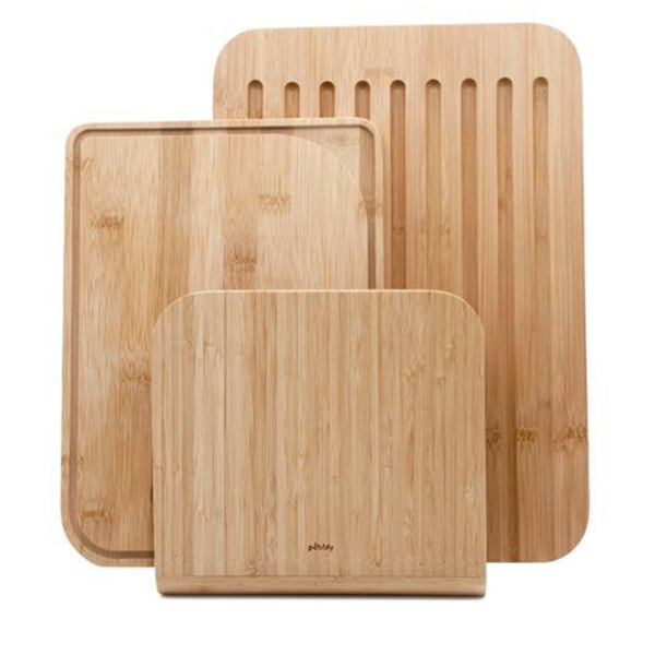PEBBLY Сет от 2 бамбукови дъски за рязане с поставка и 2 бр. ножове
