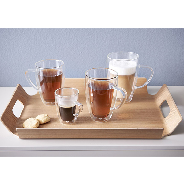 Подносът Bredemeijer® Madera с ретро дизайн е правоъгълен, с повдигнати ръбове. Изработен е от лека, но много здрава дървесина и има две ръкохватки за носене. Почиства се лесно с влажна кърпа. Подносът се предлага и в M и XL размер.