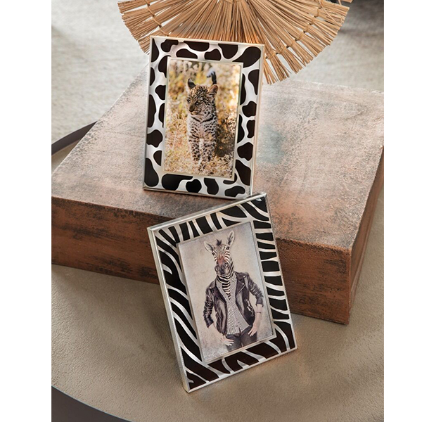 Рамка за снимки със сребърно покритие и принт на зебра. Предлага се в размери 10 х 15 см и 13 х 18 см. Може да се използва както окачена, така и стояща