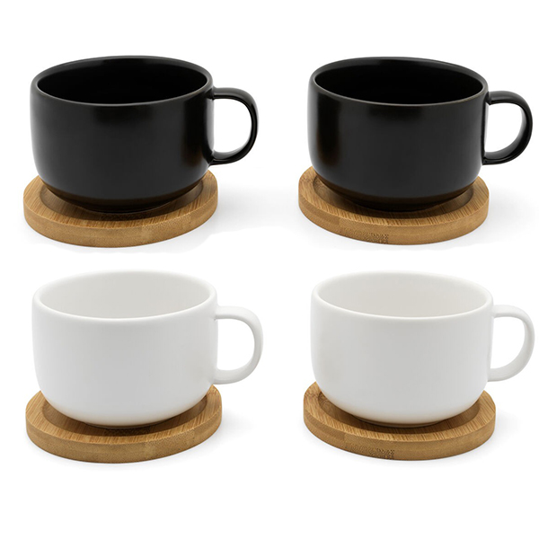 Тези чаши за чай се комбинират добре със сета за чай Umea. Те са с капацитет 250 мл. и са в комплект с бамбукови подложки. Чашите са изработени от висококачествена керамика и могат да се мият в съдомиялна машина. Предлагат се в черно и бяло.