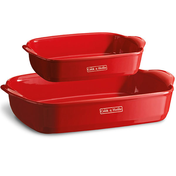 EMILE HENRY Комплект от 2 броя керамични правоъгълни форми за печене Cook & Home - червен