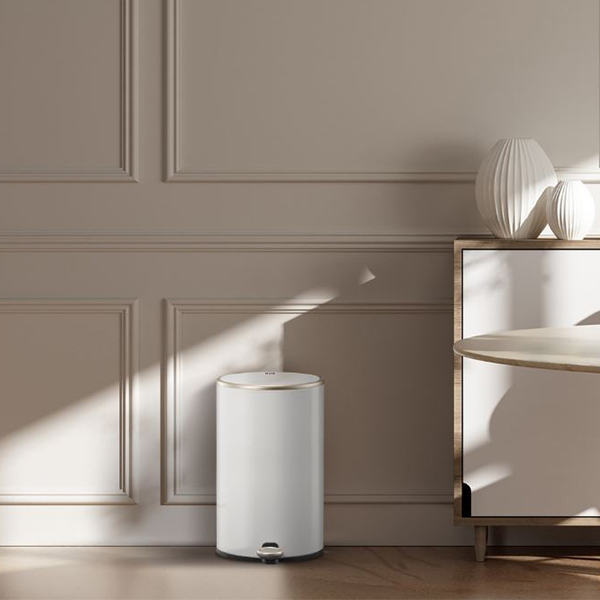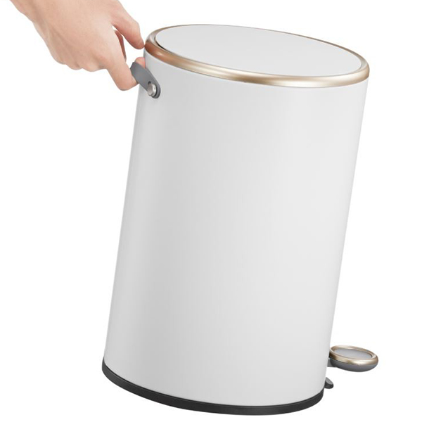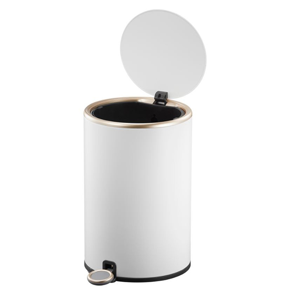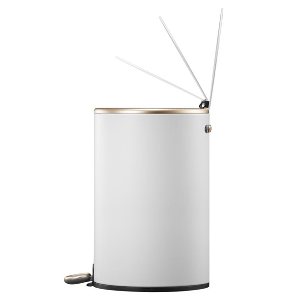 Педалът от неръждаема стомана е изключително устойчив на ежедневна употреба, а елегантният външен вид на това кошче за боклук е подчертан от матово покритие и розово-златисти детайли.