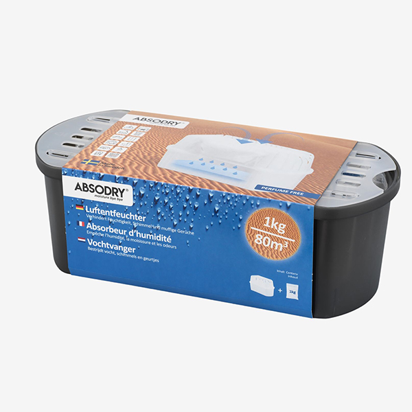 Absodry Big Compact абсорбира излишната влага в околния въздух, намалявайки риска от мухъл и неприятни миризми.
