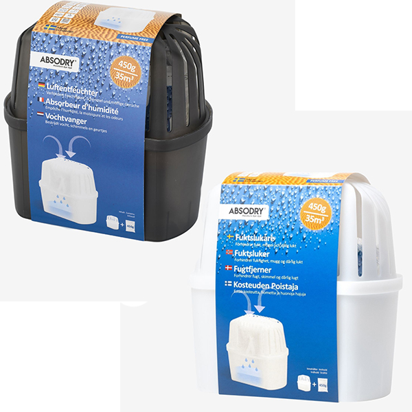 Absodry Mini абсорбира излишната влага в околния въздух, намалявайки риска от мухъл и неприятни миризми.