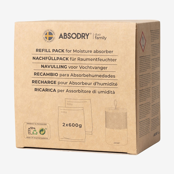 ABSODRY 2бр пълнители / торбички за влагоабсорбатор DUO FAMILY - 2бр. х 600гр.
