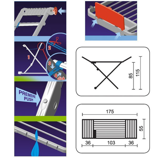 За разлика от стандартните сушилници, при които телените пръчки корозират и се откъсват от корпуса, тук пръчките за простиране са по-масивни и са отляти заедно с корпуса и няма сглобка.