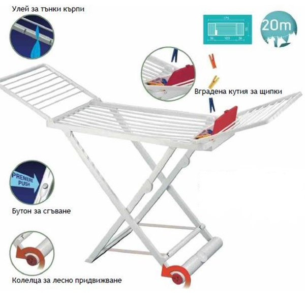 RAMACCIOTTI Простор / сушилник за дрехи 20 м. с кутия за щипки “NANNI“