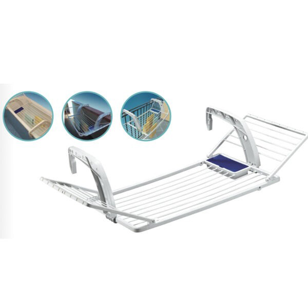 За разлика от стандартните сушилници, при които телените пръчки корозират и се откъсват от корпуса, тук пръчките за простиране са по-масивни и са отляти заедно с корпуса и няма сглобка.