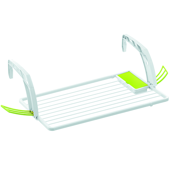 За разлика от стандартните сушилници, при които телените пръчки корозират и се откъсват от корпуса, тук пръчките за простиране са по-масивни и са отляти заедно с корпуса и няма сглобка.