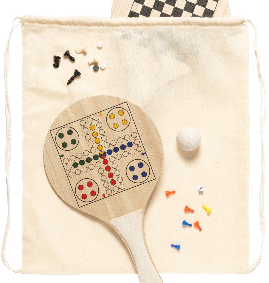 • Комплектът включва 2 ракети, топка и 3 настолни игри ("Не се сърди човече", Дама и Шах), които могат да се играят на ракетите