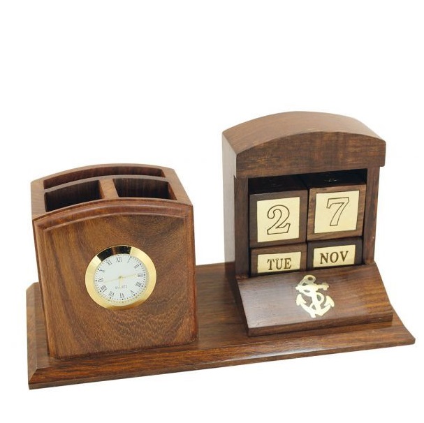 Поставка за бюро с календар с кубчета, поставка за химикалки и часовник