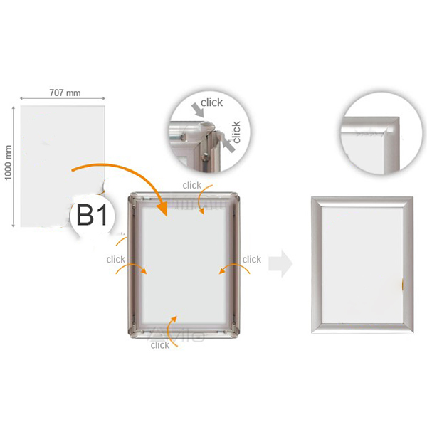 - Многократна смяна на плаката чрез отваряеми алуминиеви профили