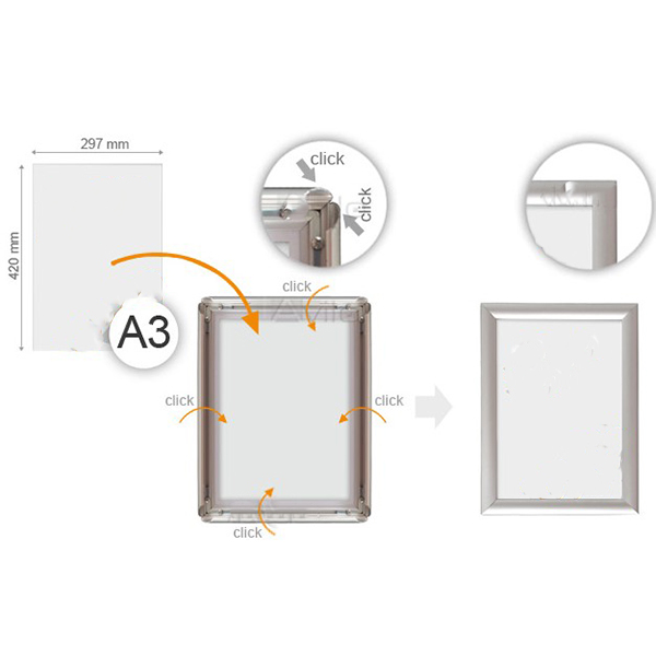 - Многократна смяна на плаката чрез отваряеми алуминиеви профили