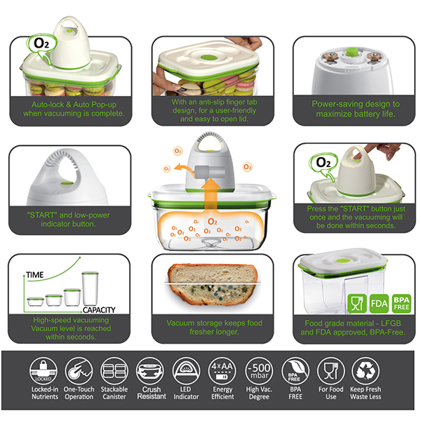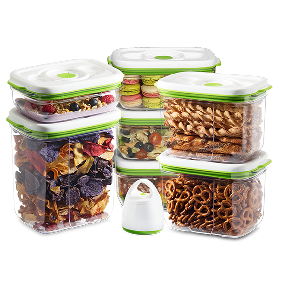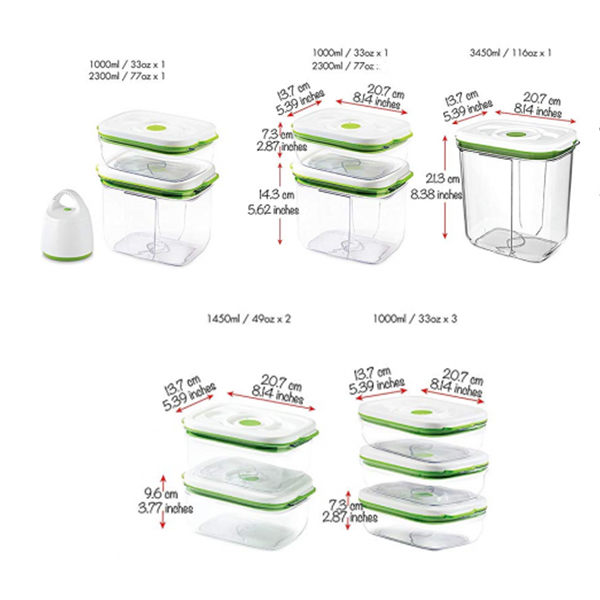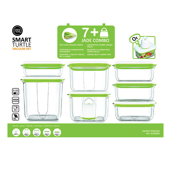 Серията Barcelona на FOSA се състои от вакуумни контейнери за съхранение на храна, които запазват храната по-свежа за по-дълго време и намаляват отпадъците на потребителите. Запазете хранителните вещества, вкуса и дълготрайността на Вашата храна с лесната за използване вакуумна система. Като се премахне по-голямата част от кислорода, намалява скоростта на окисление. Контейнерите се вакуумират само с вакуумна помпа FOSA.