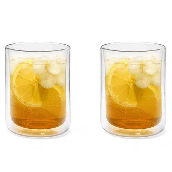 Тези красиви чаши са направени от боросиликатно стъкло, което има по-дълъг експлоатационен живот от повечето видове стъкла. Напитките остават топли (или студени) по-дълго, поради двойната стена на конструкцията на чашите. Външната стена остава със стайна температура, така че можете лесно да ги държите, без да изгаряте ръцете си. Чашите имат обем от 290 мл. и са подходящи за микровълнова фурна и съдомиялна машина. Комплектът се състои от две чаши.