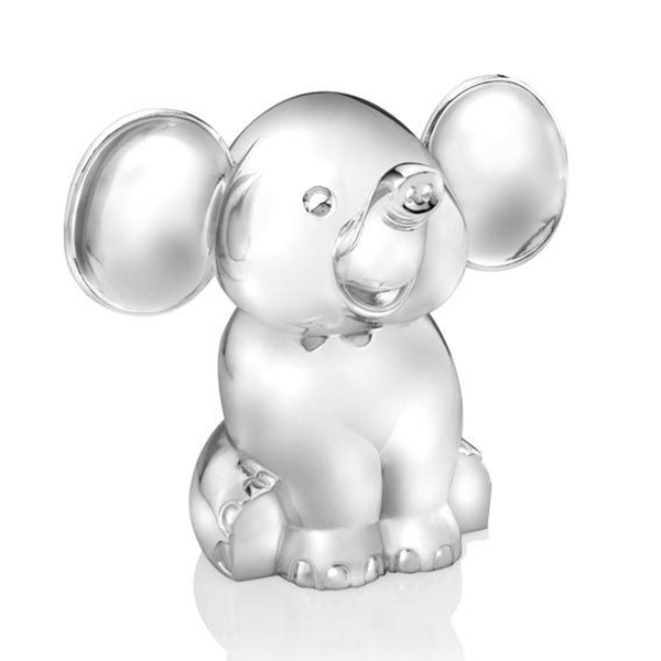 Касичка във формата на весело седнало слонче. Касичката не се нуждае от поддръжка и не изисква полиране.