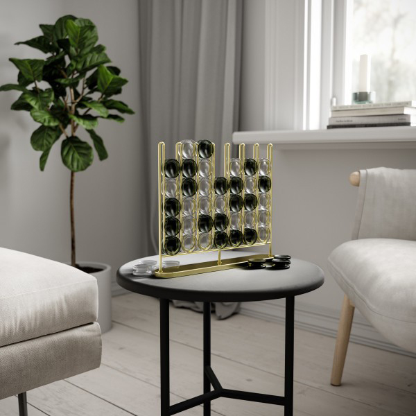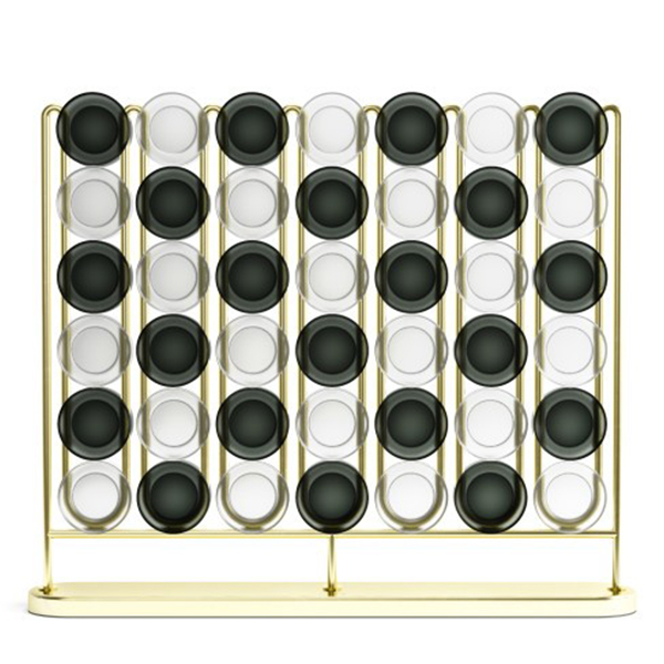 Забавна игра за всеки повод, Stax Four-in-a-Row е идеална за всички възрасти. С метално покритие и матирани фигури за игра, този издигнат обрат на класическата игра също е и уникален декор, който да покажете във Вашия дом. Модерното месингово покритие и матираните фигури за игра създават привлекателен външен вид на всяка маса или плот.