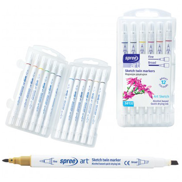 Маркери двувърхи Art Sketch, 12 цвята