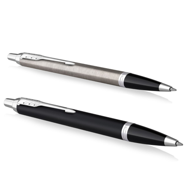 - Лъскаво метално покритие с хромирани детайли и емблематичния клип стрела PARKER