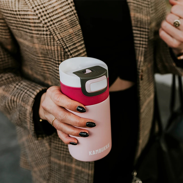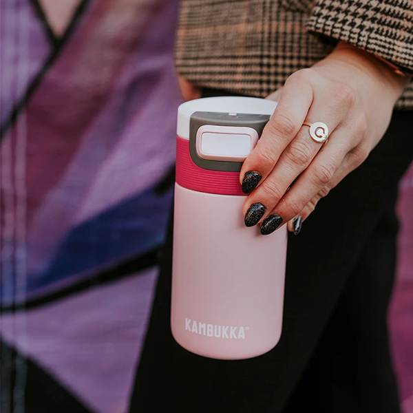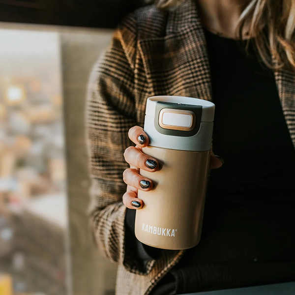 Термочашата Етна ви осигурява горещо кафе, когато се мъчите да останете будни по време на работа или ледено студена напитка след тежка тренировка. Когато сте на път от една дейност към друга, тя не само ще запази напитката ви гореща за 5 часа и студена за 11 часа, но и ще предотврати разливането. Където и да сте, винаги можете да разчитате на позицията за пиене, която ви е необходима, благодарение на удобния капак 3 в 1: 1 - натиснете за да пиете и отпуснете бутона за да се затвори отново, 2 - постоянно отворено, все едно пиете от обикновена чаша, 3 - заключвате и продължавате вашето приключение.