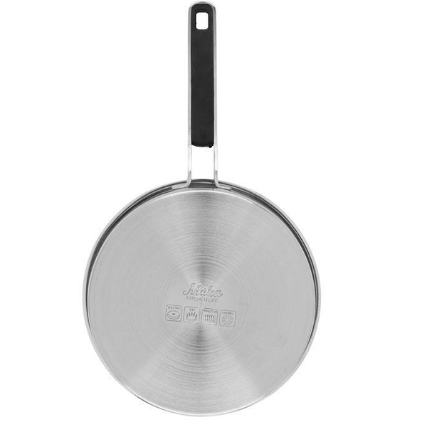 Елегантен тиган от неръждаема стомана със стъклен капак. Трислойно дъно, което позволява топлината да се разпределя равномерно и ефективно, намалявайки риска от изгаряне на основата. Вътрешна мерителна скала улеснява измерването на течността директно в тигана, а процесът на готвене може лесно да се наблюдава през стъкления капак. Отвор за пара за намаляване на налягането, така че храната да не изкипи толкова лесно.