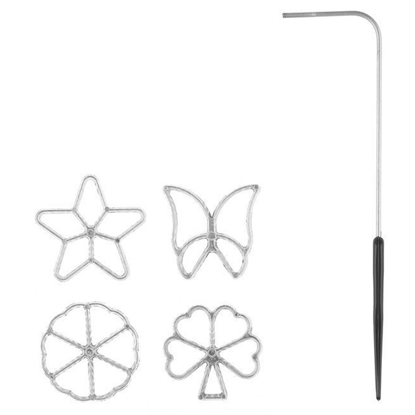 • Комплектът включва форми на: цвете, пеперуда,звезда, детелина и ръкохватка