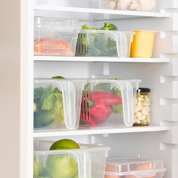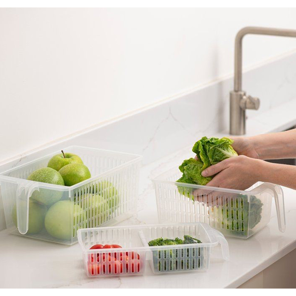 Двукамерна кутия с дръжка за съхранение и подреждане на хладилника, кухненски шкафове, килер и др.
