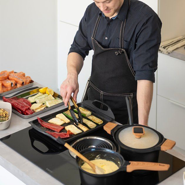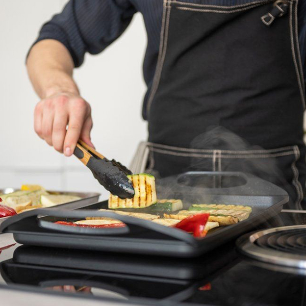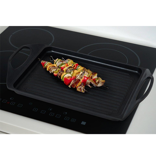 Грил плоча за котлон, която може да се използва за приготвяне на месо, риба, зеленчуци и други деликатеси на скара. Равномерна температура в цялата зона за печене. Препоръчително е използването на дървени или пластмасови кухненски прибори.