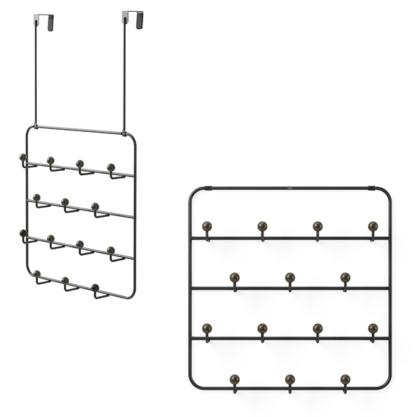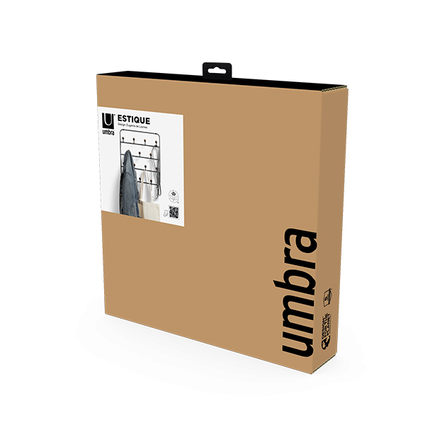 ESTIQUE разполага с 14 куки и може да бъде монтирана на стена или окачен на врата. Дървените топки в края на куките предпазват деликатните предмети или дрехи от нараняване. За окачване на врата, в комплекта са включени и две специални куки. Те са подходящи за врати с дебелина до 4 см.