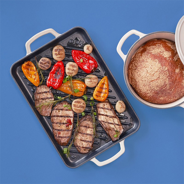 alido е истинско бижу за Вашите кухня и маса! Специален дизайн и специални свойства - при серията съдове за готвене Calido не само дизайнът привлича внимание, но и резултатите от готвенето в тях. Характеризира се с емайлирано покритие отвътре и емайлиран черен градиент отвън. Предимствата на тази чугунена тава: - Много добро запазване на топлината; - Подходяща за температура до 300 °С; - Равномерно разпределение на температурата; - Оребрена повърхност; - Дълъг живот.