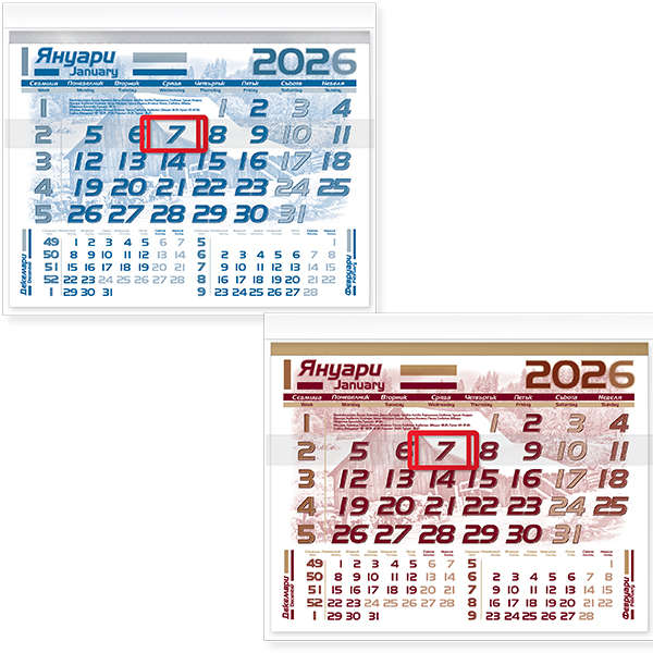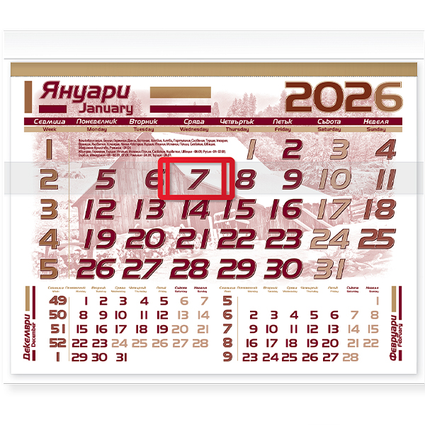 Работен календар Авангард - насипен с бяла подложка 2026 г