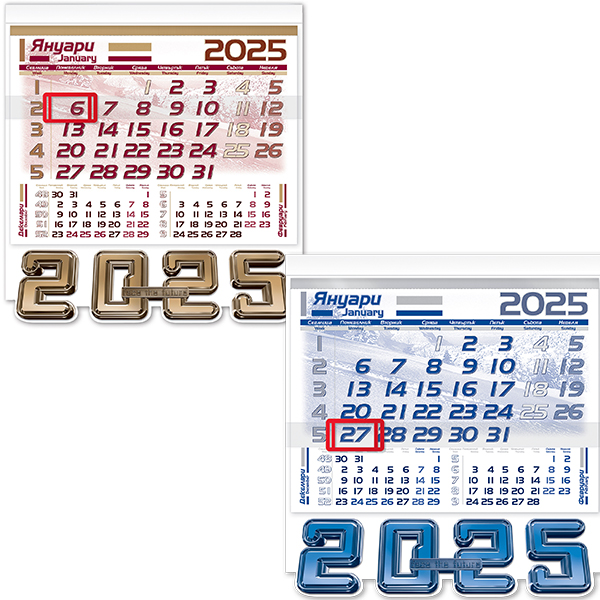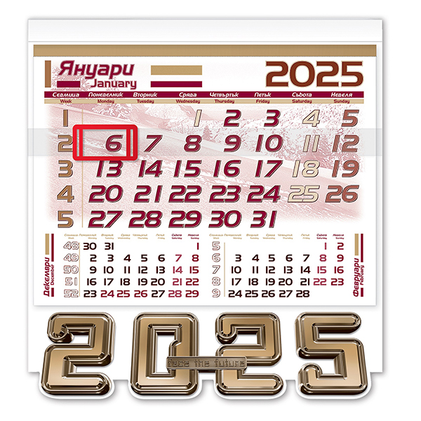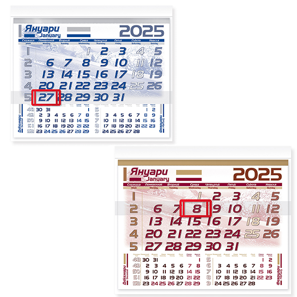 Работен календар Авангард - насипен с щанцова година 2025 г