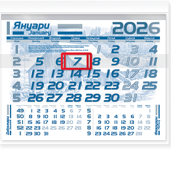 • Календарна тетрдка с иглена перфорация и сребърна/златна самозалепна лента (шапка)