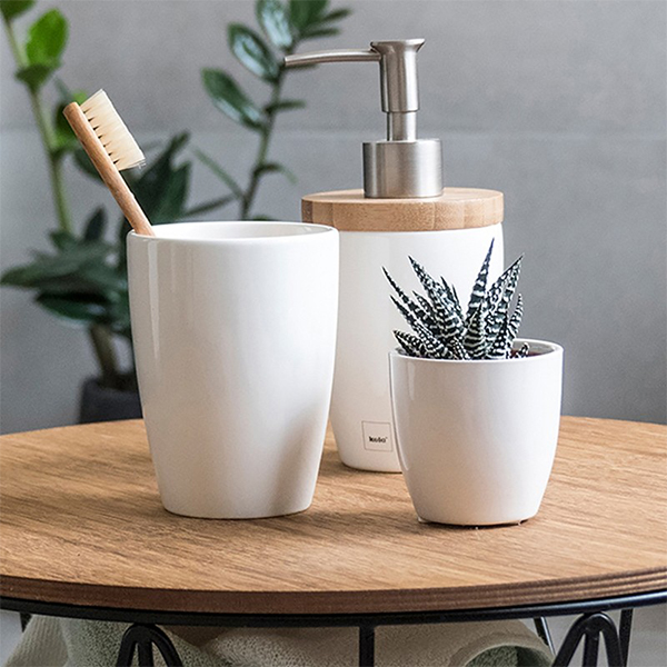 Създайте естествена атмосфера във Вашата баня с красивите аксесоари за баня, изработени от бяла керамика. Елегантната поставка за четки за съби пасва на всяка баня и не бива да липсва в никое домакинство.